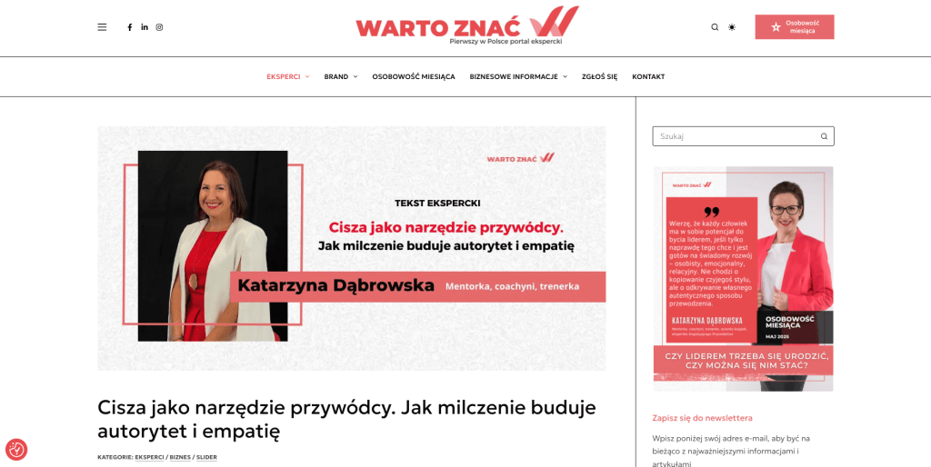 Katarzyna Dąbrowska: Nie nazwałabym tego genem, ale widzę, że niektóre osoby mają naturalne predyspozycje – np. łatwo nawiązują kontakt, potrafią inspirować innych albo zachowują spokój w trudnych sytuacjach. Co ważne, samo pojęcie przywództwa bardzo się zmienia. Dziś talenty liderskie to nie dominacja czy przebojowość, ale umiejętność słuchania, budowania relacji, wspierania różnorodnych osób w zespole. Dlatego uważam, że bycie liderką czy liderem to bardziej decyzja i droga niż wrodzony dar – rozwój, autorefleksja i praktyka są tu kluczowe, niezależnie od punktu startowego.